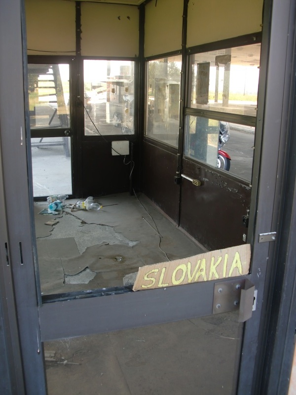 Because of the heat we stopped in the shade of the former Slovavkia and Hungary. Odd feeling to see the building left alone with no people. This picture says everything.